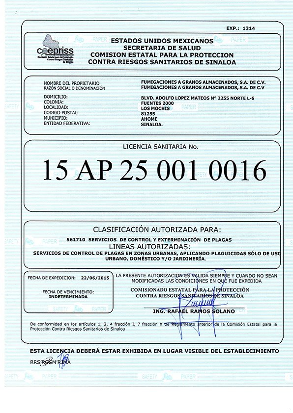 BIENVENIDOS A FUMIGACIONES A GRANOS ALMACENADOS
